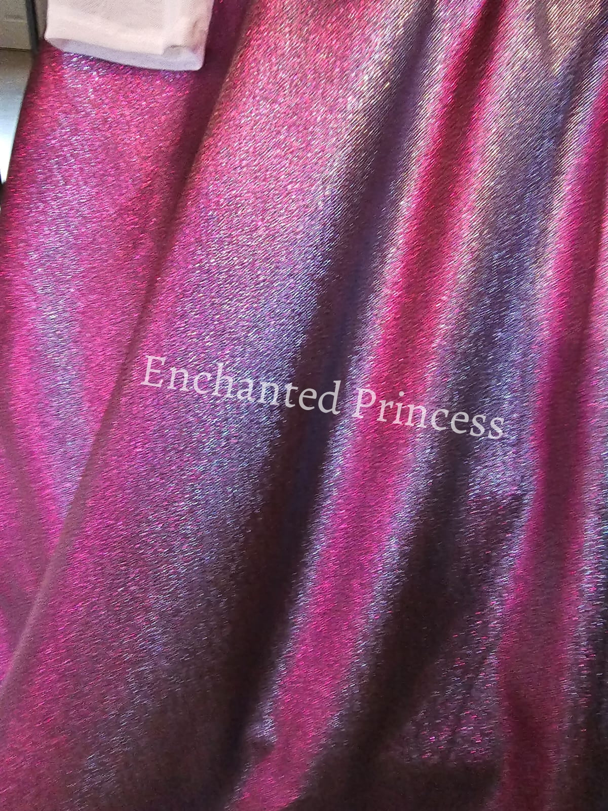 Inspired by Aurora’s enchanting gown in Sleeping Beauty, this breathtaking dress captures the moment when pink and blue magic collide. The fabric shimmers between soft rose and dreamy sky blue, giving the gown a fairytale feel that’s truly unforgettable.