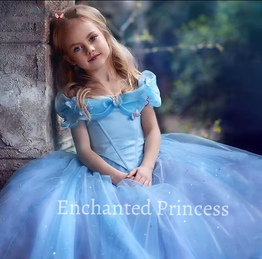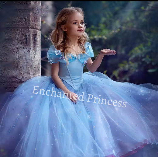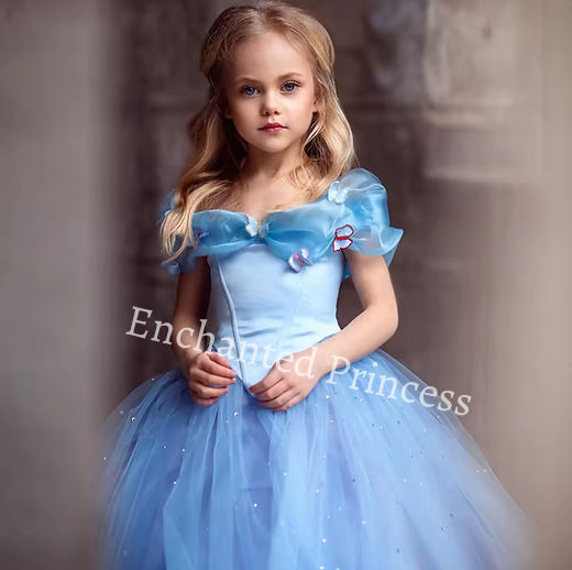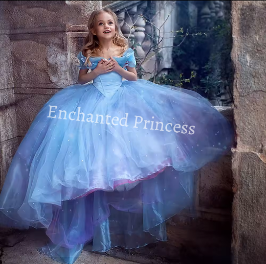 Based on Cinderella, your little girl will certainly feel like she is going to the ball. With the highest quality materials, this dress has a satin bodice and an organza off the shoulder look.